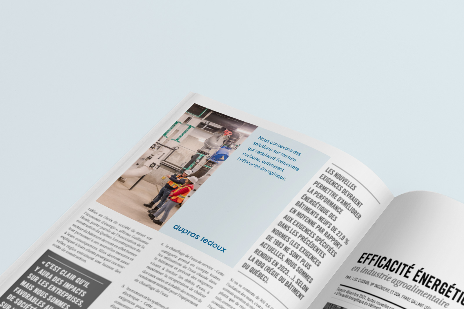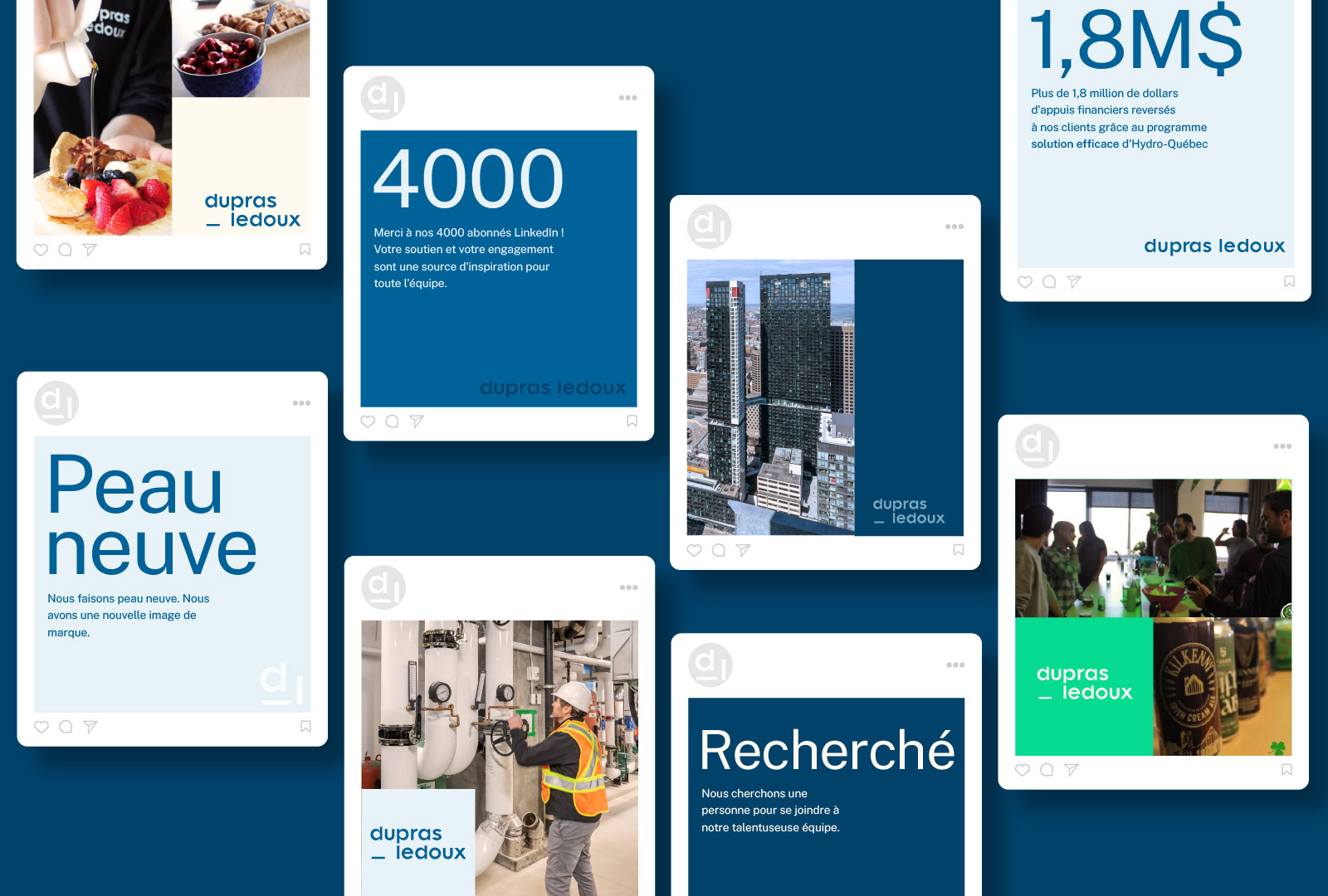 Actualiser l’image de marque de la firme de génie-conseil Dupras Ledoux. Ajustement du logo, nouvelle palette de couleurs et création d’une nouvelle grille afin d’uniformiser leurs communications.